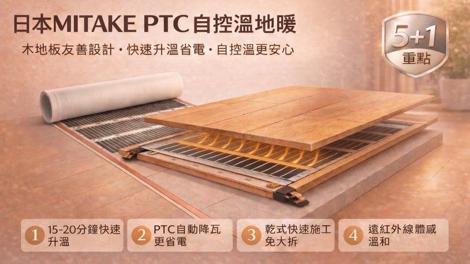 五陽地暖|日本MITAKE PTC自控溫遠紅外線地暖|木地板地暖6大優勢解析