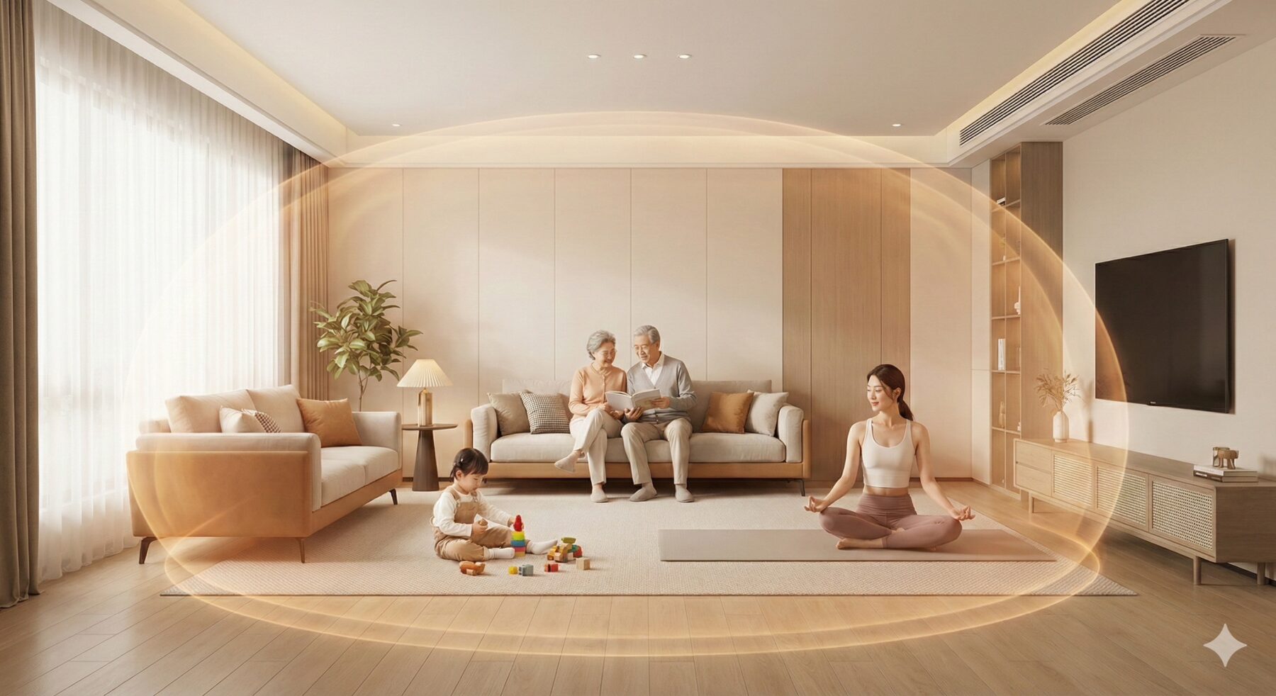 許多人第一次體驗地暖時,說不出哪裡不一樣,只會很直覺地說一句:「很舒服。」這份差異,來自輻射熱的特性。它不像暖氣機有明顯風感與忽冷忽熱,而是一種穩定、均勻、像冬天曬太陽一樣,靜靜包覆身體的溫暖。在這樣的環境裡,皮膚不乾、空氣不躁、呼吸不悶,身體會自然放鬆。那是一種你平常不會一直注意到,但一離開就立刻知道差別的溫度。